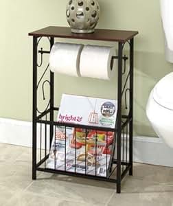 Freestanding combination magazine rack and toilet paper holder it is a freestanding toilet paper stand holder. Metal decorative freestanding bathroom toilet tissue paper roll storage holder stand and dispenser.